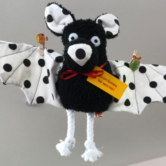 Rechtzeitig zu Halloween erwarten wir einen Schwarm Flughunde, die sich über ein neues Zuhause, in einem Kinderzimmer, sehr freuen würden. Reinhold der Flughund bringt auch einen Freund mit: Horst die Spinne. Aber eine wirklich liebenswerte Spinne. – Besuchen Sie Reinhold und Horst doch einmal in unserem Ladengeschäft und lassen Sie sich von deren Charme überzeugen!